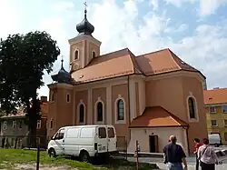 - Die römisch-katholische Pfarrkirche Hl. Dreifaltigkeit (Kościół Świętej Trójcy i Najświętszej Maryi Panny Różańcowej) wurde 1767 als barocke Saalkirche erbaut. Das Gotteshaus besitzt ein dreijochiges Langhaus mit einem dreiseitig geschlossenen Chor. An der Westseite befindet sich ein eingezogener Glockenturm mit Zwiebelhaube. Im spätbarocken Hauptaltar befindet sich ein ovales Dreifaltigkeitsgemälde. Weiterhin befinden sich in der Kirche zwei Seitenaltäre im Rokokostil, eine barocke-klassizistische Kanzel aus der Wende vom 18. ins 19. Jahrhundert, ein barockes Taufbecken und eine spätklassizistische Orgel aus der ersten Hälfte des 19. Jahrhunderts.[2]