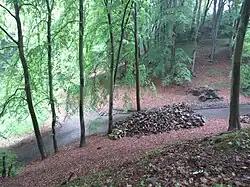 - ↑ Der ungefähre Bachverlauf mit dem Stausee ist auf verschiedenen Karten eingetragen; Vgl. beispielsweise: Falk-Verlag Stadtplan Extra Standardfaltung, Flensburg + Umgebung, 7. Auflage 2014 sowie Graphischen Institutes Eckmann (mediaprint): Stadtplan Flensburg mit Harrislee und Glücksburg (Zentrum) vom, Stand 2011