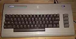 Der Commodore 64[1] (kurz C64, umgangssprachlich 64er oder Brotkasten) ist ein 8-Bit-Heimcomputer mit 64 KB Arbeitsspeicher.