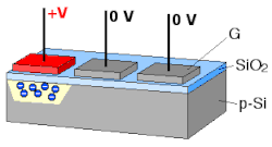 Legt man an eine Elektrode eine Spannung an (positiv bei p-dotiertem Halbleiter, negativ bei n-Dotierung), so bildet sich unterhalb der Isolierschicht an der Oberfläche des Halbleiters ein Gebiet, das als Potentialtopf bezeichnet wird. In diesem Gebiet ist die Ladungsträgerkonzentration der Majoritätsladungsträger sehr gering.
