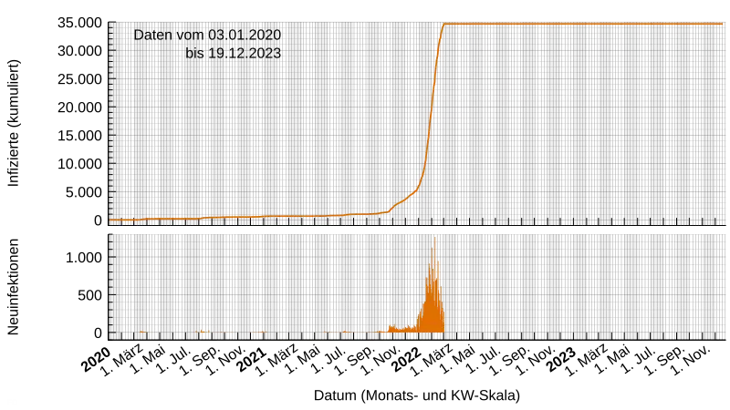 Am 6. Januar 2021 kam es erstmals zu einem coronabedingten Todesfall auf den Färöern, als ein vorerkrankter 68-jähriger Mann im Krankenhaus verstarb.[19] Ein zweiter Todesfall wurde der WHO rund sieben Monate später am 2. Aug. 2021 gemeldet.[20]