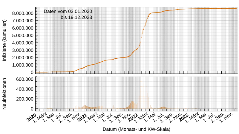 Seit Ende 2021 war die Omikron-Variante dominant; die Sieben-Tage-Inzidenz lag zu Anfang 2022 bei 639 (plus Dunkelziffer).