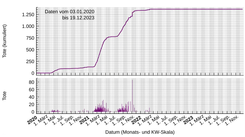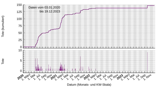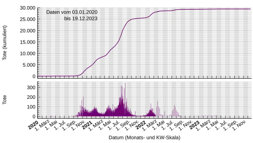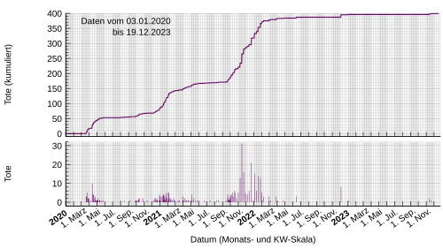 Bis zum 31. März wurden 25 Fälle positiv getestet und die ersten beiden COVID-19-bedingten Todesfälle registriert.[68]