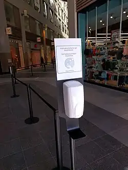 Am 11. März 2020 untersagten die dafür zuständigen Regionen bzw. die deutschsprachige Gemeinschaft den Besuch in Senioren- und Pflegeheimen.[66] Nach einer weiteren Sitzung des Sicherheitsrates am 12. März 2020 teilte Ministerpräsidentin Sophie Wilmès mit, dass Eltern, die arbeiten müssen, ihre Kinder weiterhin zur Betreuung in die Schulen schicken dürfen. Demgegenüber mussten aber alle Cafés, Restaurants und Diskotheken geschlossen bleiben. Alle Sport- und Kulturveranstaltungen mussten abgesagt werden, Geschäfte mit Ausnahme von Apotheken, Lebensmittel- und Tierfutterläden am Wochenende geschlossen bleiben. An die Bürger wurde appelliert, Hamsterkäufe zu unterlassen.[67] Außerdem galt ein Versammlungsverbot, von dem nur Familien eine Ausnahme bilden. Die Bürger durften sich im Freien nur in Anwesenheit einer einzigen weiteren Person oder eines Freundes oder Familienmitglieds aufhalten und mussten einen Abstand von 1,5 Meter zueinander einhalten. Letztere Maßnahme trat am 13. März 2020 um Mitternacht in Kraft und galt vorerst bis zum 5. April 2020.[68] Am Freitag, dem 27. März 2020 verlängerte der Nationale Sicherheitsrat die Corona-Schutzmaßnahmen bis zum 19. April 2020.[69]
