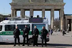 - ↑ Berlin: Polizei kontrolliert Aufenthaltsbeschränkung im Freien. In: sueddeutsche.de. 28. März 2020, abgerufen am 28. März 2020.