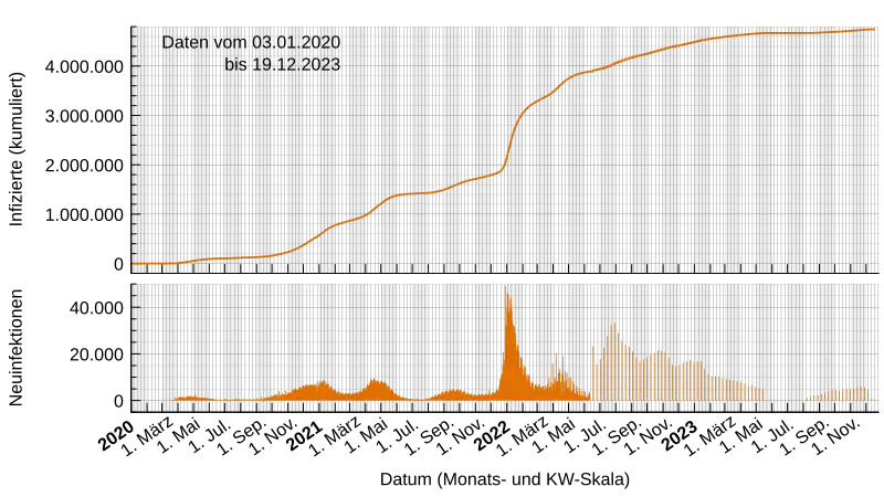 - ↑ a b WHO Coronavirus Disease (COVID-19) Dashboard; oben rechts auf der Seite ist ein Link zum Download der Daten im CSV-Format