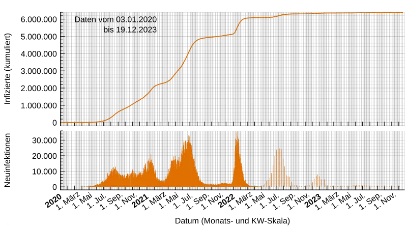 - ↑ a b WHO Coronavirus Disease (COVID-19) Dashboard; oben rechts auf der Seite ist ein Link zum Download der Daten im CSV-Format