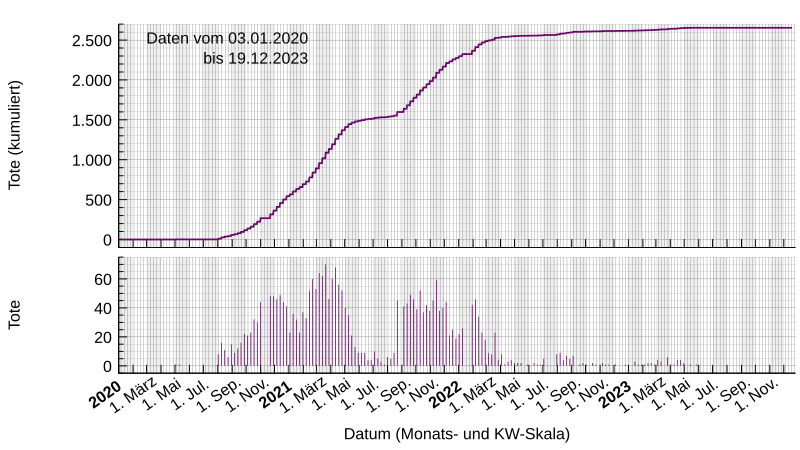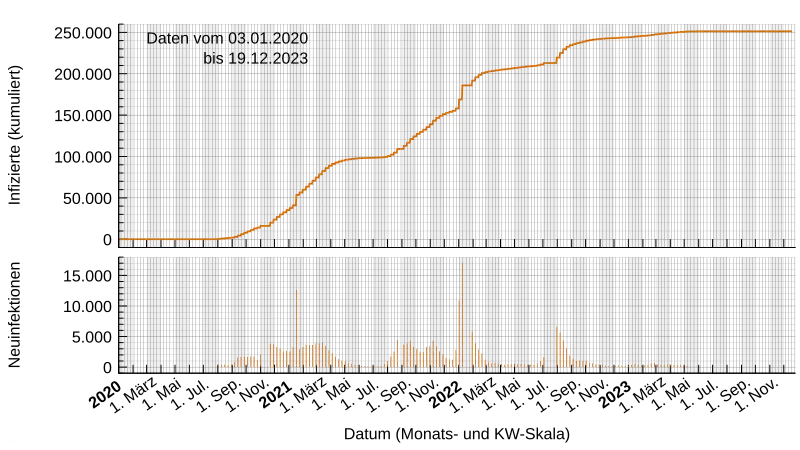 - ↑ Vgl. Länder, Infektionen, Todesfälle: Die Verbreitung des Coronavirus. In: tagesschau.de. Das Erste, 1. Januar 2021, abgerufen am 1. Januar 2021.