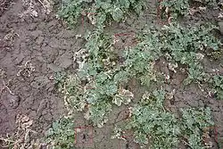 - Probleme scheinen steinreiche Böden zu bereiten. So wird davon berichtet, dass es Probleme durch verspritzenden CULTAN-Dünger gibt, falls er es nicht schafft Steine zu schneiden.[28] Insbesondere die teils eingesetzte Ammoniumsulfat-Lösung (ASL) muss bei pH-Werten unter 4 mit dem Zusatz nicht zur Blattdüngung geeignet gekennzeichnet sein.[29] Bei schweren und gleichzeitig trockenen Böden scheinen ähnliche Probleme aufzutreten[30].
