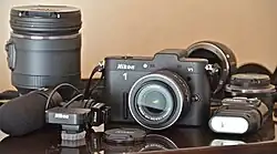 Nikon 1 ist das dritte digitale Kamerasystem von Nikon und positioniert sich technisch zwischen DSLRs und Kompaktkameras. Für die Kamera wurden ein neues Bajonett und ein neuer Sensor entworfen. Das System besitzt einen elektronischen Sucher ohne Spiegel, trotzdem lassen sich wie bei Spiegelreflexkameras die Objektive tauschen. Durch das kleine Sensorformat und damit geringere Brennweite und das Entfallen der Komponenten für einen optischen Sucher können diese Systemkameras im Vergleich zu DSLRs kompakt produziert werden.