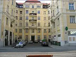 - ↑ Das Haus hatte einige bekannte Bewohner: An der Adresse Porzellangasse 39 wohnte der Theologe und Philosoph Walter Kirchschläger, der Psychoanalytiker Hermann Nunberg, die Cembalistin Julia Menz, die Mary-Wigman-Mitarbeiterin Meta Menz, der Architekt Anton Potyka, die Kinderbuch-Illustratorin Susi Weigel und die Grete-Wiesenthal-Meisterschülerin Vera Zahradnik (alias Wera Weigel), im Haus Porzellangasse 41 Franz von Zülow und im Haus Porzellangasse 43 der Verleger Adolf Josef Storfer.