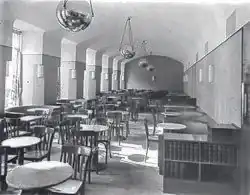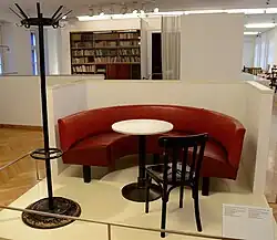 Der aus Tirol stammende Innenraumarchitekt und Chefdesigner der „Prag Rudniker Korbwaren-Fabrikation“ Josef Zotti, Schüler des Architekten Josef Hoffmann, erhielt 1914 den Auftrag, eine Korbbalustrade um die Straßensitzplätze des Café Museum in der Friedrichstraße zu entwerfen. 1930 bis 1931 gestaltete er das Café tiefgreifend um. Er installierte halbrunde Sitzlogen aus rotem Kunstleder entlang der Wände und kreierte so einen gemütlichen Wohnzimmercharakter, was im Kontrast zum bisher kühl wirkenden Innenraum stand.[7] Ein Extrazimmer mit großem Spiegel, welches nicht mit Bänken, sondern lediglich mit Stühlen und Tischen ausgestattet war, fungierte bis in die 1990er Jahre als Anziehungspunkt für lokale und internationale Schachspieler.[8][9]