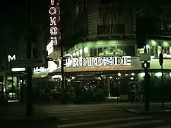 Zwischen den beiden Weltkriegen trafen sich hier die Mitglieder der Surrealisten wie André Breton, Max Ernst und Louis Aragon und amerikanische, zu der Zeit in Paris lebende Schriftsteller wie Ernest Hemingway, F. Scott Fitzgerald, Gertrude Stein und Henry Miller gehörten zu den Gästen.[4] In Hemingways Roman The Sun Also Rises (dt. Fiesta) aus dem Jahr 1926 stellt der Charakter Jake Barnes fest: „No matter what café in Montparnasse you ask a taxi driver to bring you to from the right bank of the river, they always take you to the Rotonde“. (dt. etwa: „Bitten Sie einen Taxifahrer um eine Fahrt vom rechten Seineufer über den Fluss zu einem Café in Montparnasse, wird er sie immer zum Rotonde fahren“.)[5] George Gershwin arbeitete hier 1928 an seiner Komposition Ein Amerikaner in Paris.[6]