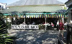 - ↑ Mandalit del Barco: Beignets Are Back at Landmark New Orleans Cafe. In: NPR. 19. Oktober 2005, abgerufen am 12. März 2017 (englisch).