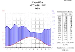 Cairos geographische Koordinaten sind 37° 1′ N, 89° 10′ W. Cairo liegt 96 m über dem Meeresspiegel.