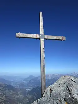 | Kleines Gipfelkreuz und Gipfelbuchbox auf dem Haldensteiner Calanda | ||