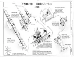 Calciumcarbid wurde erstmals 1836 von Edmund Davy sowie 1862 von Friedrich Wöhler dargestellt und 1862 von Marcellin Berthelot ausführlich beschrieben. Die labormäßige Calciumcarbid-Herstellung im elektrischen Ofen erfolgte 1892 durch Thomas Willson in Amerika und durch Henri Moissan in Paris. Walter Rathenau entwickelte einen speziellen elektrischen Schmelzofen (Patent GB190006038A., Patent US676514A.), in dem mittels eines Lichtbogens Branntkalk (CaO) und Koks zu Calciumcarbid umgesetzt wurden. Die Elektrochemischen Werke in Bitterfeld waren im Frühjahr 1895 das erste Unternehmen in Deutschland, die mit dem sogenannten Rathenau-Ofen Calciumcarbid im großtechnischen Betrieb herstellte. In der Schweiz begann die industrielle Calciumcarbid-Gewinnung nach dem Rathenau-Verfahren 1895 in der Aluminiumindustrie AG in Neuhausen, in Norwegen (Sarpsborg) und in Deutschland (Aluminium Industrie Aktiengesellschaft im badischen Rheinfelden) im Jahre 1898 aufgenommen. Weitere Karbid-Fabriken nach dem Rathenau-Verfahren wurden in Finnland (Imatra) und Österreich (Matrei) errichtet.[6] In den USA begann die Produktion um dieselbe Zeit in den Vorgängerorganisationen von Union Carbide, an die Willson sein Patent 1895 verkaufte und in Kanada durch von Willson gegründete Unternehmen. 1934 wurden weltweit rund 3 Millionen Tonnen, davon 600.000 Tonnen in Deutschland, produziert.[7] Die Jahresproduktion fiel von 10 Millionen Tonnen in den 1960er-Jahren auf 2 Millionen Tonnen 2010.[8] Ein bedeutender Produzent von Calciumcarbid in der zweiten Hälfte des 20. Jahrhunderts waren die Chemischen Werke Buna bei Schkopau, die über 1 Million Tonnen der Substanz im Jahr herstellten[9].