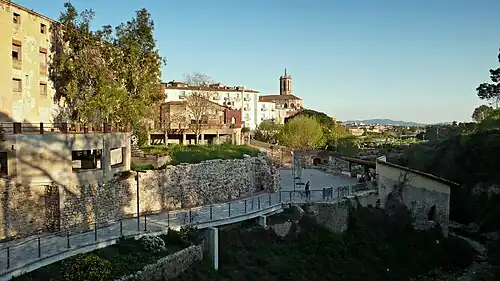 Mit der Nutzung der Thermalbäder begann die städtebauliche Entwicklung der Gemeinde. Der Löwenbrunnen – Font del lleó –, der 1581 gebaut wurde, ist 1822 und 1927 renoviert worden. Dieser befindet sich auf dem Marktplatz, Das Wasser kommt immer in gleichbleibender Menge aus dem Brunnen und enthält Chlor, Fluor, Brom und Iod. Es wird u. a. zur Heilung von Arthritis und Knochenbrüchen verwendet. Auf dem Marktplatz befinden sich auch die römischen Thermen, das aus den 1990er Jahren stammende Rathaus, das Kurhotel Broquetes und zwei miteinander verbundene Museen: Casa Delguer und Thermalia, ein architektonisch interessantes Renaissance-Gebäude, das ehemalige Spital Santa Susanna. Es enthält neben Erklärungen zum Bäderwesen auch eine Sammlung mit Werken des in Barcelona geborenen Malers und Bildhauers Manolo Hugué. Durch dessen Freundschaft mit Pablo Picasso besitzt das Museum auch Gemälde, Skulpturen und Keramik von Picasso.