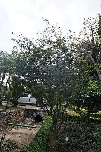 Habitus von Calliandra surinamensis als Zierpflanze | ||||||||||||