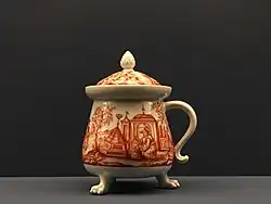 Camaïeu-Malereien waren bereits im Altertum[4] bekannt, erlebten aber ihre Blütezeit im 16. und 18. Jahrhundert in Italien. So sind zum Beispiel Arbeiten von Caravaggio und Maturino da Firenze an Hauswänden bekannt. Gegenstände aus Porzellan oder Fayence wurden im ersten Drittel des 18. Jahrhunderts bevorzugt mit Purpur und Eisenrot, später mit Kupfergrün, in Grau und Sepia dekoriert.