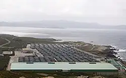 - Nördlich von Camariñas liegt an der Küstenstraße das Naturschutzgebiet Arenal de Trece; eine naturbelassene Fels- und Dünenlandschaft. Es ist das größte Schutzgebiet der Caramiña, die dem Ort dem Namen gab. Der Strauch wird bis zu einem Meter hoch und ist stark verzweigt. Die kleinen weiblichen Blüten besitzen drei Blütenblätter, die männlichen Blüten sind blattlos. Die Früchte sind bis zu einem Zentimeter dicke, weißrosa Steinfrüchte. Sie schmecken bittersüß und sind im August reif. Die Art ist gefährdet; im Arenal de Trece befindet sich ihr größtes Schutzgebiet in Galicien.[7] Weitere Pflanzenarten, die dort ihr Auskommen finden, sind unter anderem Hellerkräuter, Fetthennen, Herbst-Seidelbast, Wiesenknopf, Zistrosen und der vom Aussterben bedrohte Ampfer Rumex rupestris.[11]