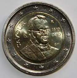 Aus Anlass von Cavours 200. Geburtstag wurde 2010 eine 2-Euro-Gedenkmünze mit seinem Bildnis emittiert.[9]