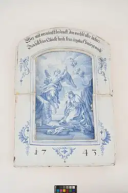 - ↑ Die Frontkachel des Gegenstücks befindet sich in der Sammlung der Stiftung für Kunst, Kultur und Geschichte, Winterthur, Inv. Nr. 36423, digital.skkg.ch; Kehrli 2008, S. 21.