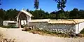 | Töpferei | 2013 und 2019 | Holzbau | Die 2013 gebaute Töpferhütte wurde 2019 vergrößert und mit einem Holzschindel-Pultdach sowie mit Lehmseitenwänden versehen. Ein Töpferofen wurde 2016 mithilfe von Studenten der Universität Tübingen gebaut. Er besteht aus einer unterirdischen Feuerkammer und einer oberirdischen Brennkammer. Krüge, Kannen und andere Aufbewahrungs- und Trinkgefäße werden auf einem großen Töpferrad oder einer Töpferscheibe gefertigt und in einer Grube (Grubenbrand) oder im Töpferofen gebrannt. An der Töpferei befindet sich ein Abbaufeld für den Ton. |