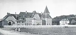 Mit dem 1911 eingeweihten Altbau des heutigen Hans-Thoma-Gymnasiums (HTG) begann die Geschichte des Campus. Das damals größte öffentliche Gebäude in Lörrach war mit einer Länge von 60 Meter und einem 40 Meter hohen Turm Stadtbild prägend. Das neue Schulhaus entstand aufgrund der Schulraumnot, welche aus der Eingemeindung von Stetten am 1. April 1908 resultierte. Aus diesem Grund wurde als Standort für die neue Schule das Flurstück Niederfeld gewählt, was sich an der Grenze zwischen Stetten und Lörrach befindet. In das Bauwerk zieht neben der Volksschule auch eine Realschule ein, welches zur damaligen Zeit ein neuer Schultyp war. Zum neuen Schulhaus gehört neben dem Hauptbau auch eine Turnhalle. Erst 1924 wurde die Schule nach dem Maler und Grafiker Hans Thoma benannt. Ein Ausbau zum Realgymnasium mit Abitur folgte und 1928 wurde die Volksschule nach dem Neubau der Fridolinschule in Stetten ausgegliedert. 1948 wurden die Oberrealgymnasien in Gymnasien umbenannt, so dass das HTG seinen heutigen Namen erhält.[1]
