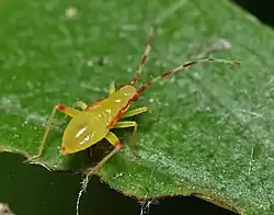 Die Wanzen werden 3,9 bis 4,7 Millimeter lang.[2] Sie sind charakteristisch mit gelben und braunen Flecken gefärbt und haben insbesondere einen kräftig gelb gefärbten Cuneus auf den Hemielytren, der eine dunkelrote Spitze trägt. Ihre Fühler sind sehr lang. Die Nymphen sind gelb und haben rot und weiß gestreifte Fühler sowie rote Streifen an den Seiten des Pronotums. Die Art hat Ähnlichkeit mit Cyllecoris histrionius und Tupiocoris rhododendri.[3]