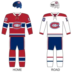 Die Canadiens de Montréal spielen seit der Zeit der Original Six in roten und weißen Trikots, die über die Jahre hinweg nur minimal verändert wurden. Signifikant für das rote Trikot ist dabei ein blau-weißer Streifen auf dem Ärmel in Höhe des Ellenbogen sowie ein Bruststreifen in den Farben Blau und Weiß, auf dem sich das Teamlogo befindet, das bei allen NHL-Teams die Brustpartie bestimmt. Die Schulter des weißen Trikots ist in roter Farbe gehalten, unterhalb des Brustlogos befindet sich ein kleiner Streifen in den Farben Blau, Weiß und Rot.