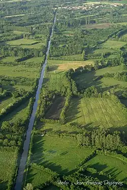 Der Kanal beginnt im kleinen Hafen von Courdault und verläuft von dort ca. 2,6 km lang schnurgerade in südwestlicher Richtung. In diesem Bereich erhält er über einen ca. 630 m langen Graben Wasser von der nahen Vieille Autise. Ein weiterer Zufluss von jener existiert bei Saint-Sigismond.