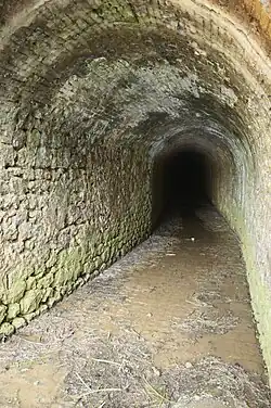 Der Entwässerungskanal entstand durch Francesco Sergardi Bindi, um die stehenden Gewässer des 156 Hektar großen und 3 m tiefen Sees des Pian del Lago abfließen zu lassen und dadurch die Malaria in dem Gebiet zu verringern.[1] Erste Pläne zu dem Projekt entstanden ab 1760 durch Leonardo Ximenes.[7] Die Arbeiten ab 1766 beschäftigten etwa 120 Arbeiter, die zumeist aus Carrara stammten.[8] Es entstanden 24 Luftschächte und es wurden etwa 6300 kg Sprengstoff benötigt, um sich den Weg durch das felsige Gelände zu bahnen.[9][2]