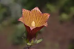 Die zwittrigen Blüten sind radiärsymmetrisch und sechszählig (dies ist eine Besonderheit innerhalb der Campanuloideae) mit doppelter Blütenhülle. Es sind sechs Kelchblätter vorhanden. Die sechs Kronblätter sind glockig verwachsen mit nur relativ kurzen Kronzipfeln. Die Krone ist gelb-orange bis rot-orange gefärbt und teils mit dunklen Nerven versehen. Es ist nur ein Kreis mit sechs Staubblättern vorhanden. Der Pollen besitzt drei, selten vier Poren („porat“), die teils langgezogen auslaufen („colporat“).