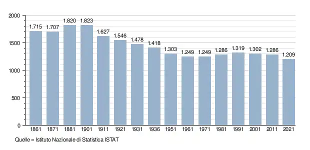 - ↑ Bilancio demografico e popolazione residente per sesso al 31 dicembre 2024. ISTAT. (Bevölkerungsstatistiken des Istituto Nazionale di Statistica, Stand 31. Dezember 2024).
