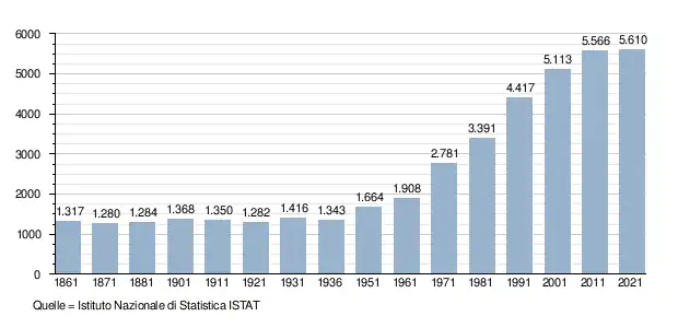 - ↑ Bilancio demografico e popolazione residente per sesso al 31 dicembre 2024. ISTAT. (Bevölkerungsstatistiken des Istituto Nazionale di Statistica, Stand 31. Dezember 2024).