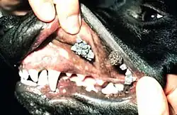 - ↑ Buǧrahan Bekir Yaǧcı, Kerem Ural, Naci Öcal, Ali Evren Haydardedeoǧlu: Azithromycin therapy of papillomatosis in dogs: a prospective, randomized, double-blinded, placebo-controlled clinical trial. In: Veterinary Dermatology. Bd. 19, Nr. 4, 2008, S. 194–198, doi:10.1111/j.1365-3164.2008.00674.x.