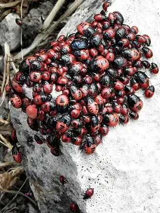 Aggregation von Canthophorus melanopterus mit unterschiedlichen Entwicklungsstadien | ||||||||||||
