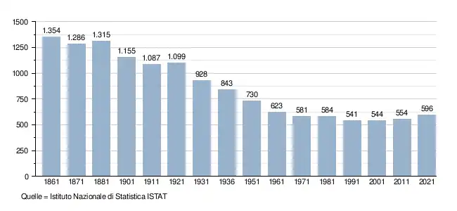 - ↑ Bilancio demografico e popolazione residente per sesso al 31 dicembre 2024. ISTAT. (Bevölkerungsstatistiken des Istituto Nazionale di Statistica, Stand 31. Dezember 2024).