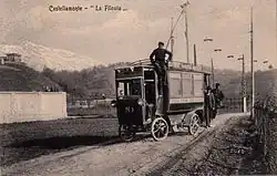 | Argegno–San Fedele Intelvi | 1909 bis 1922 | Die Filovia Valle d'Intelvi von Argegno am Comer See nach San Fedele Intelvi wurde vom 4. Juli 1909 bis Ende 1922 betrieben.[9] Sie fuhr auf einer steilen Serpentinenstraße mit bis zu elf oder nach anderen Quellen sogar bis 13 Prozent Steigung.[10] | |