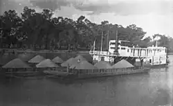In den späten 1800er und frühen 1900er Jahren wurde der Murray River von Viehhirten, Siedlern und Reisenden als Transportweg genutzt. Raddampfer und Lastkähne fuhren regelmäßig hin und her und beförderten Passagiere, Post und verschiedene Güter wie Obst, Wolle, Holz und Vieh.[1]