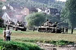 Zu dem eingesetzten Großgerät gehörten unter anderem: M60 A3-Kampfpanzer, M1 Abrams, M113 gepanzerte Mannschaftstransportwagen, M88 A1-Bergepanzer, M60 AVLB, M728 CEV-Pionierpanzer, M109 A2-Panzerhaubitzen, OH–58-Kiowa-Kampfhubschrauber und CH–47-Chinook-Transporthubschrauber.[2]