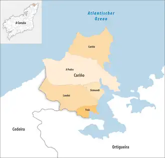 - ↑ Decreto de constitución del municipio de Cariño (DOG, 5 de febreiro de 1988). In: Diario Oficial de Galicia. Xunta de Galicia, abgerufen am 3. Oktober 2014 (galicisch).