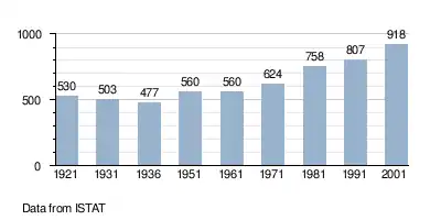 - ↑ Bilancio demografico e popolazione residente per sesso al 31 dicembre 2024. ISTAT. (Bevölkerungsstatistiken des Istituto Nazionale di Statistica, Stand 31. Dezember 2024).