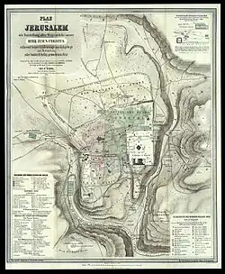 „Plan von Jerusalem mit Darstellung aller Wege, welche unser Herr Jesus Christus waehrend Seiner Leidenstage zurueckgelegt“, Charles F. Zimpel 1853