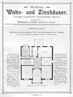 - Karl Beisbarth; Jakob Früh: Moderne Wohn- und Zinshäuser. Vorlagen ausgeführter mustergültiger Bauten. Ravensburg [1898–1900], Tafel 19–20, 23–26, 31–32, 41–44, 47–48, 55–56, 61–62.