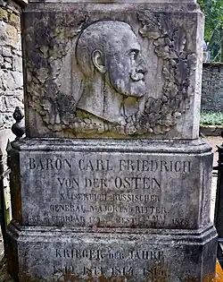 Carl Friedrich von der Osten schlug ebenfalls die Offizierslaufbahn in der russischen Armee ein. Laut Grabinschrift nahm er an den Feldzügen der Napoleonischen Kriege in den Jahren 1812, 1813, 1814 und 1815 teil.