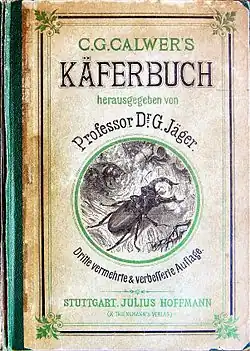 Von seinem Käferbuch,[3] das 1858 zum ersten Mal erschien, gab es bis 1916 sechs aktualisierte Auflagen. Die Erstausgabe entstand in Zusammenarbeit mit dem Zoologen und Mediziner Gustav Jäger, der nach Calwers Tod 1874 auch die Nachauflagen betreute. Bis heute finden die mehr als 1000 Käferzeichnungen aus dem Buch Verwendung, die bei der Artistischen Anstalt von Emil Hochdanz (* 1816; † 1885) in Stuttgart in Auftrag gegeben worden waren.