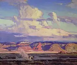 Carl Oscar Borg ist bekannt für seine Naturdarstellungen aus dem amerikanischen Südwesten, insbesondere aus Arizona und New Mexico. Er arbeitet in verschiedenen Medien, darunter Öl, Aquarell, Radierungen und Holzschnitte. Zu seinen Werken gehören dramatische Landschaften des Grand Canyon und Porträts amerikanischer Ureinwohner. Im Jahr 1936 veröffentlichte er das Buch The Great Southwest: Etchings, das sich auf Navajo- und Hopi-Themen konzentrierte.[1]
