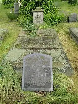 Die Familiengrabstätte mit den Grabmälern vom Landrat und Klosterhauptmann Carl Peter Johann Reichsfreiherr von Le Fort auf Boek, geb. 27. Mai 1794, gest. 27. Juni 1862, seiner Frau Henriette Marie Baronin von Le Fort, geborene Splitgerber, geb. 16. Mai 1803, gest. 17. April 1873 und den Söhnen David Johann Peter Reichsfreiherr von Le Fort, geb. 25. Februar 1838, gest. 24. März 1914 und Ludwig Friedrich Peter Reichsfreiherr von Le Fort, geb. 22. März 1840, gest. 14. August 1907, sind noch heute auf dem Friedhof in Boek vorhanden.[32]
